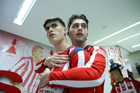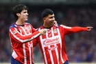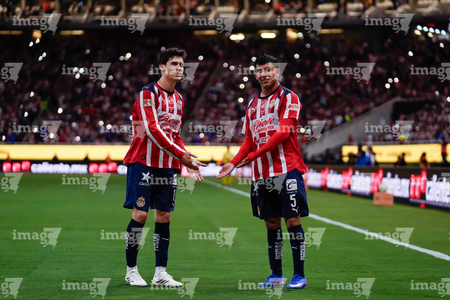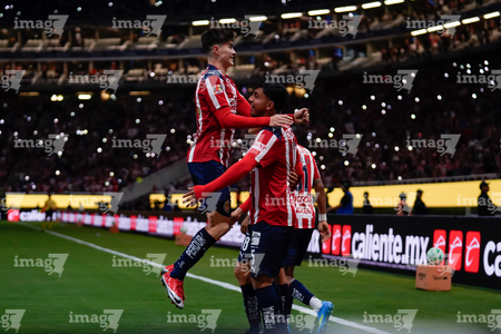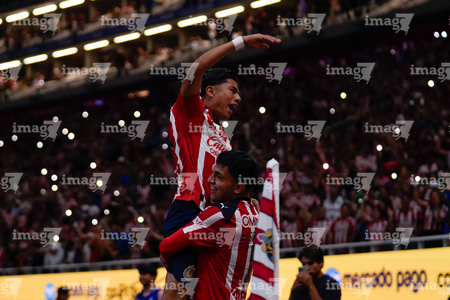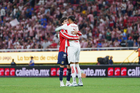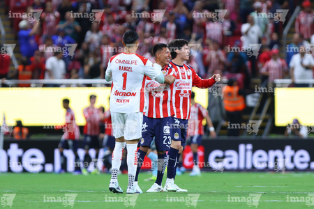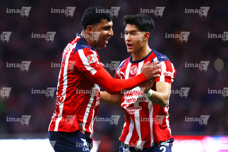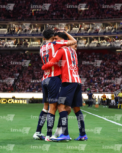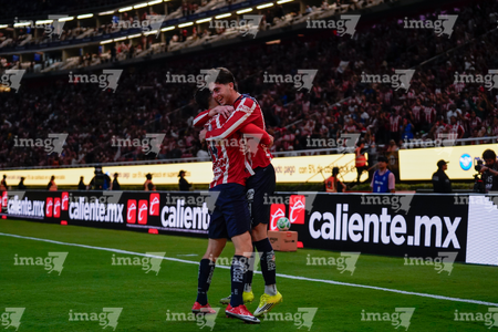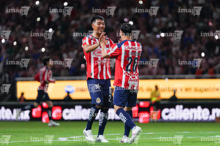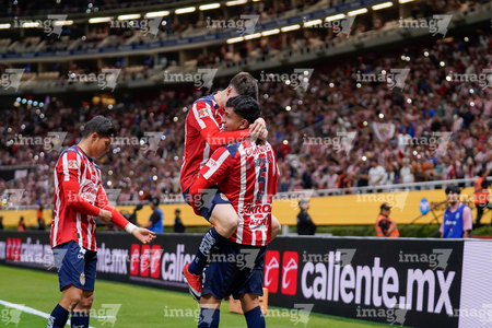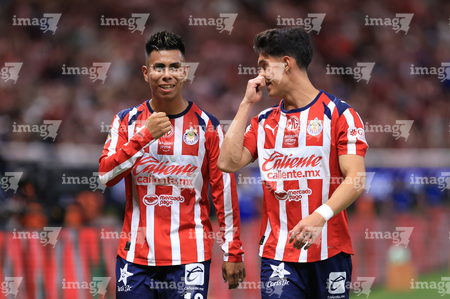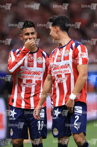 Zapopan, Jalisco, 18 de abril de 2026. Ricardo Marín y Armando González en festejo, durante el partido correspondiente a la jornada 15 del torneo Clausura 2026 de la Liga BBVA MX, entre las Chivas Rayadas del Guadalajara y el Club Puebla, realizado en el estadio Akron. Foto: Imago7/ Juan Carlos Cubeyro.