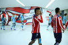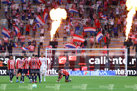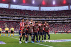 Zapopan, Jalisco, 18 de abril de 2026. Protocolo, durante el partido correspondiente a la jornada 15 del torneo Clausura 2026 de la Liga BBVA MX, entre las Chivas Rayadas del Guadalajara y el Club Puebla, realizado en el estadio Akron. Foto: Imago7/ Alejandro Lias
