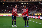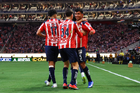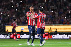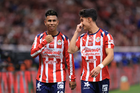 Zapopan, Jalisco, 18 de abril de 2026. Armando González y Bryan González en festejo de gol, durante el partido correspondiente a la jornada 15 del torneo Clausura 2026 de la Liga BBVA MX, entre las Chivas Rayadas del Guadalajara y el Club Puebla, realizado en el estadio Akron. Foto: Imago7/ Alejandro Lias