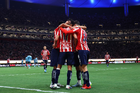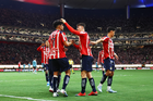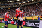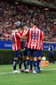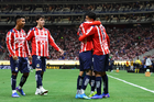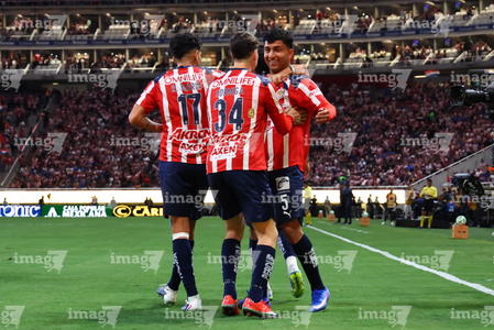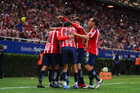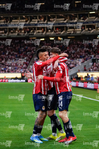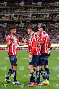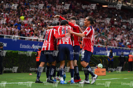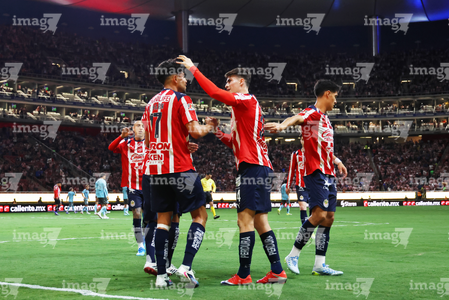 Zapopan, Jalisco, 18 de abril de 2026. Jugadores de Chivas en festejo de gol, durante el partido correspondiente a la jornada 15 del torneo Clausura 2026 de la Liga BBVA MX, entre las Chivas Rayadas del Guadalajara y el Club Puebla, realizado en el estadio Akron. Foto: Imago7/ Juan Carlos Cubeyro.