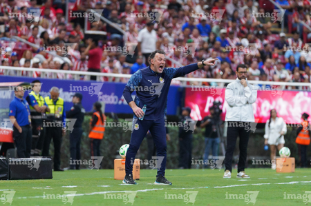 Zapopan, Jalisco, 18 de abril de 2026. Gabriel Milito, director técnico, durante el partido correspondiente a la jornada 15 del torneo Clausura 2026 de la Liga BBVA MX, entre las Chivas Rayadas del Guadalajara y el Club Puebla, realizado en el estadio Akron. Foto: Imago7/ Hugo Ramirez