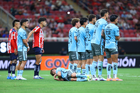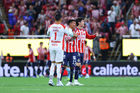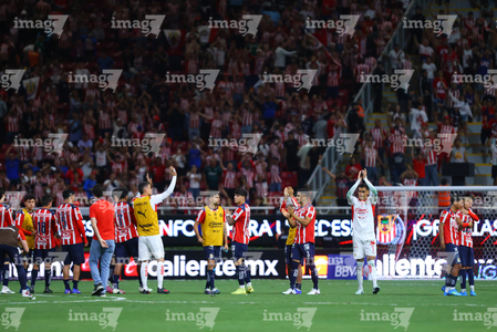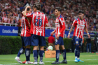 Zapopan, Jalisco, 18 de abril de 2026. Jugadores de Chivas, durante el partido correspondiente a la jornada 15 del torneo Clausura 2026 de la Liga BBVA MX, entre las Chivas Rayadas del Guadalajara y el Club Puebla, realizado en el estadio Akron. Foto: Imago7/ Juan Carlos Cubeyro.