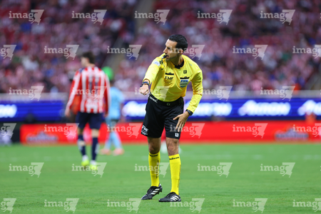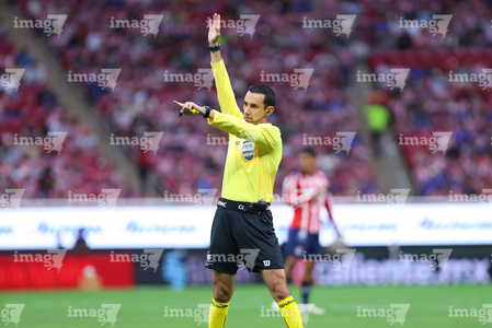 Zapopan, Jalisco, 18 de abril de 2026. César Arturo Ramos, árbitro central, durante el partido correspondiente a la jornada 15 del torneo Clausura 2026 de la Liga BBVA MX, entre las Chivas Rayadas del Guadalajara y el Club Puebla, realizado en el estadio Akron. Foto: Imago7/ Juan Carlos Cubeyro.