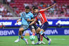 Zapopan, Jalisco, 18 de abril de 2026. Juan Vargas, durante el partido correspondiente a la jornada 15 del torneo Clausura 2026 de la Liga BBVA MX, entre las Chivas Rayadas del Guadalajara y el Club Puebla, realizado en el estadio Akron. Foto: Imago7/ Hugo Ramirez