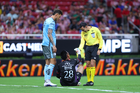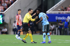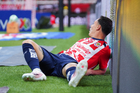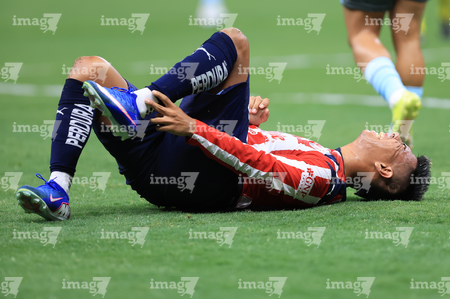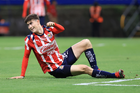 Zapopan, Jalisco, 18 de abril de 2026. Efraín Álvarez resultó lesionado, durante el partido correspondiente a la jornada 15 del torneo Clausura 2026 de la Liga BBVA MX, entre las Chivas Rayadas del Guadalajara y el Club Puebla, realizado en el estadio Akron. Foto: Imago7/Cristian Hernandez