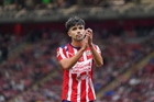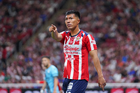 Zapopan, Jalisco, 18 de abril de 2026. Brian Gutiérrez en festejo de gol, durante el partido correspondiente a la jornada 15 del torneo Clausura 2026 de la Liga BBVA MX, entre las Chivas Rayadas del Guadalajara y el Club Puebla, realizado en el estadio Akron. Foto: Imago7/ Alejandro Lias