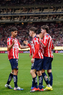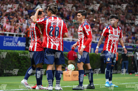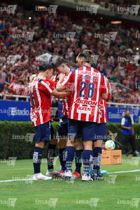 Zapopan, Jalisco, 18 de abril de 2026. Jugadores de Chivas en festejo, durante el partido correspondiente a la jornada 15 del torneo Clausura 2026 de la Liga BBVA MX, entre las Chivas Rayadas del Guadalajara y el Club Puebla, realizado en el estadio Akron. Foto: Imago7/ Juan Carlos Cubeyro.