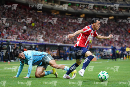 Zapopan, Jalisco, 18 de abril de 2026. Eduardo Navarro y Armando González, durante el partido correspondiente a la jornada 15 del torneo Clausura 2026 de la Liga BBVA MX, entre las Chivas Rayadas del Guadalajara y el Club Puebla, realizado en el estadio Akron. Foto: Imago7/ Juan Carlos Cubeyro.