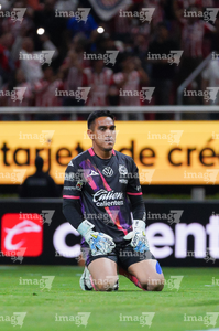 Zapopan, Jalisco, 18 de abril de 2026. Raúl Rangel, durante el partido correspondiente a la jornada 15 del torneo Clausura 2026 de la Liga BBVA MX, entre las Chivas Rayadas del Guadalajara y el Club Puebla, realizado en el estadio Akron. Foto: Imago7/ Juan Carlos Cubeyro.