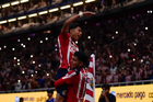 Zapopan, Jalisco, 18 de abril de 2026. Raúl Rangel en festejo , durante el partido correspondiente a la jornada 15 del torneo Clausura 2026 de la Liga BBVA MX, entre las Chivas Rayadas del Guadalajara y el Club Puebla, realizado en el estadio Akron. Foto: Imago7/Cristian Hernandez