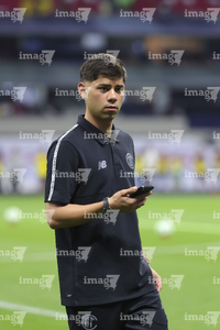 Ciudad de México, 18 de abril de 2026. Nicolas Castro y Jonathan Dos Santos, durante el partido correspondiente a la jornada 15 del torneo Clausura 2026 de la Liga BBVA MX, entre las Águilas del América y los Diablos Rojos del Toluca, realizado en el estadio Ciudad de los Deportes. Foto: Imago7/ Rafael Vadillo