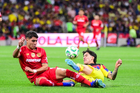 Ciudad de México, 18 de abril de 2026. Brian Rodríguez en lamento al salir de cambio, durante el partido correspondiente a la jornada 15 del torneo Clausura 2026 de la Liga BBVA MX, entre las Águilas del América y los Diablos Rojos del Toluca, realizado en el estadio Ciudad de los Deportes. Foto: Imago7/ Rafael Vadillo