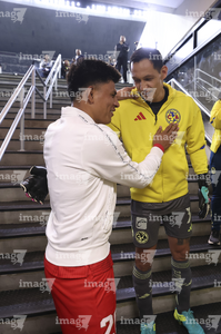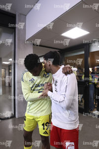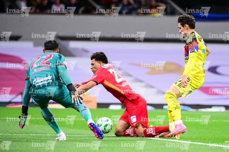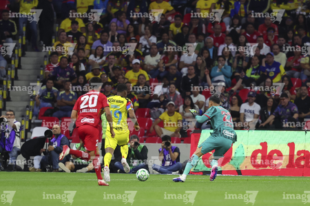 Ciudad de México, 18 de abril de 2026. Jesús Gallardo y Rodolfo Cota, durante el partido correspondiente a la jornada 15 del torneo Clausura 2026 de la Liga BBVA MX, entre las Águilas del América y los Diablos Rojos del Toluca, realizado en el estadio Ciudad de los Deportes. Foto: Imago7/ Rafael Vadillo
