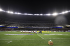 Ciudad de México, 18 de abril de 2026. Balón de futbol Voit Aereus sobre caja de Amazon, durante el partido correspondiente a la jornada 15 del torneo Clausura 2026 de la Liga BBVA MX, entre las Águilas del América y los Diablos Rojos del Toluca, realizado en el estadio Ciudad de los Deportes. Foto: Imago7/ Alexis Chavez