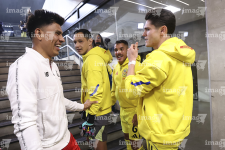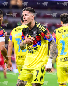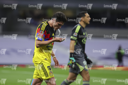 Ciudad de México, 18 de abril de 2026. Alexis Vega y Embajadora, durante el partido correspondiente a la jornada 15 del torneo Clausura 2026 de la Liga BBVA MX, entre las Águilas del América y los Diablos Rojos del Toluca, realizado en el estadio Ciudad de los Deportes. Foto: Imago7/ Rafael Vadillo