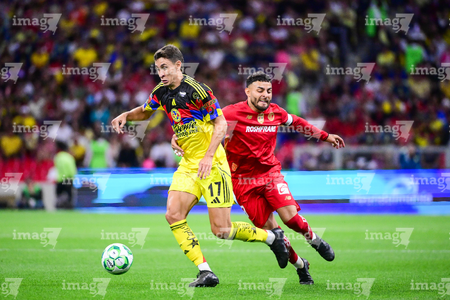 Ciudad de México, 18 de abril de 2026. Nicolas Castro y Jonathan Dos Santos, durante el partido correspondiente a la jornada 15 del torneo Clausura 2026 de la Liga BBVA MX, entre las Águilas del América y los Diablos Rojos del Toluca, realizado en el estadio Ciudad de los Deportes. Foto: Imago7/ Alexis Chavez