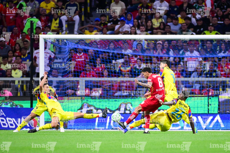 Ciudad de México, 18 de abril de 2026. José Zuñiga falla tiro a gol, durante el partido correspondiente a la jornada 15 del torneo Clausura 2026 de la Liga BBVA MX, entre las Águilas del América y los Diablos Rojos del Toluca, realizado en el estadio Ciudad de los Deportes. Foto: Imago7/ Rafael Vadillo