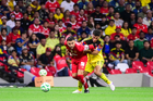 Ciudad de México, 18 de abril de 2026. Kevin Álvarez y Pavel Pérez, durante el partido correspondiente a la jornada 15 del torneo Clausura 2026 de la Liga BBVA MX, entre las Águilas del América y los Diablos Rojos del Toluca, realizado en el estadio Ciudad de los Deportes. Foto: Imago7/ Rafael Vadillo