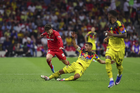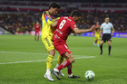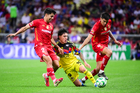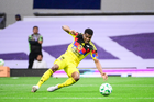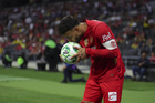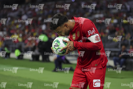 Ciudad de México, 18 de abril de 2026. Alexis Vega le da un beso al balón de futbol Voit Aereus, durante el partido correspondiente a la jornada 15 del torneo Clausura 2026 de la Liga BBVA MX, entre las Águilas del América y los Diablos Rojos del Toluca, realizado en el estadio Ciudad de los Deportes. Foto: Imago7/ Rafael Vadillo
