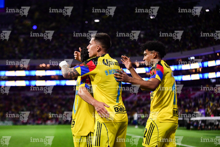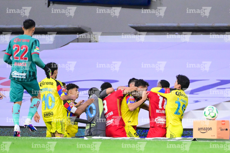 Ciudad de México, 18 de abril de 2026. Jugadores del Club América en festejo de gol, durante el partido correspondiente a la jornada 15 del torneo Clausura 2026 de la Liga BBVA MX, entre las Águilas del América y los Diablos Rojos del Toluca, realizado en el estadio Ciudad de los Deportes. Foto: Imago7/ Alexis Chavez
