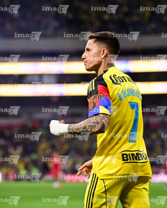 Ciudad de México, 18 de abril de 2026. Marcel Ruiz en reclamo a Ismael Rosario López, árbitro central, durante el partido correspondiente a la jornada 15 del torneo Clausura 2026 de la Liga BBVA MX, entre las Águilas del América y los Diablos Rojos del Toluca, realizado en el estadio Ciudad de los Deportes. Foto: Imago7/ Rafael Vadillo