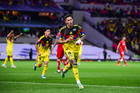 Ciudad de México, 18 de abril de 2026. Brian Rodríguez en festejo de gol, durante el partido correspondiente a la jornada 15 del torneo Clausura 2026 de la Liga BBVA MX, entre las Águilas del América y los Diablos Rojos del Toluca, realizado en el estadio Ciudad de los Deportes. Foto: Imago7/ Alexis Chavez