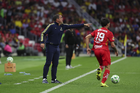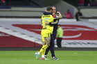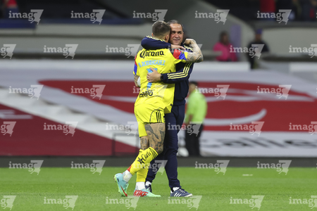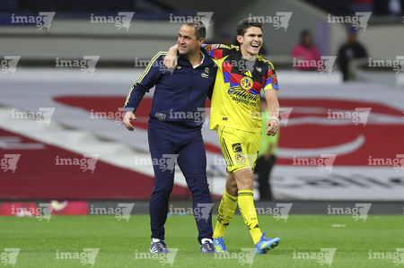Ciudad de México, 18 de abril de 2026. Andre Jardine, director técnico e Israel Reyes en festejo, durante el partido correspondiente a la jornada 15 del torneo Clausura 2026 de la Liga BBVA MX, entre las Águilas del América y los Diablos Rojos del Toluca, realizado en el estadio Ciudad de los Deportes. Foto: Imago7/