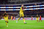 Ciudad de México, 18 de abril de 2026. Brian Rodríguez y Andre Jardine, director técnico en festejo, durante el partido correspondiente a la jornada 15 del torneo Clausura 2026 de la Liga BBVA MX, entre las Águilas del América y los Diablos Rojos del Toluca, realizado en el estadio Ciudad de los Deportes. Foto: Imago7/