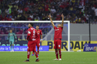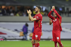 Ciudad de México, 18 de abril de 2026. Paulinho agradece a la Afición, durante el partido correspondiente a la jornada 15 del torneo Clausura 2026 de la Liga BBVA MX, entre las Águilas del América y los Diablos Rojos del Toluca, realizado en el estadio Ciudad de los Deportes. Foto: Imago7/