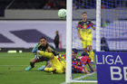 Ciudad de México, 18 de abril de 2026. Rodolfo Cota ve balón pegar en el poste, durante el partido correspondiente a la jornada 15 del torneo Clausura 2026 de la Liga BBVA MX, entre las Águilas del América y los Diablos Rojos del Toluca, realizado en el estadio Ciudad de los Deportes. Foto: Imago7/ Rafael Vadillo