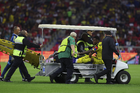 Ciudad de México, 18 de abril de 2026. Cristian Borja resultó lesionado, durante el partido correspondiente a la jornada 15 del torneo Clausura 2026 de la Liga BBVA MX, entre las Águilas del América y los Diablos Rojos del Toluca, realizado en el estadio Ciudad de los Deportes. Foto: Imago7/ Rafael Vadillo