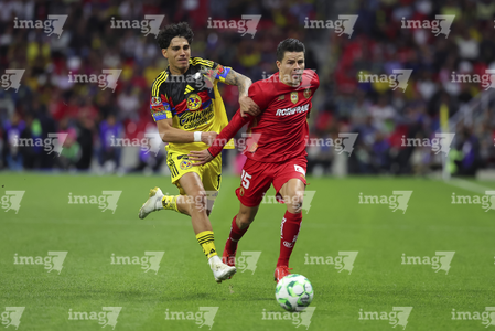 Ciudad de México, 18 de abril de 2026. Ramón Juárez y Nicolas Castro, durante el partido correspondiente a la jornada 15 del torneo Clausura 2026 de la Liga BBVA MX, entre las Águilas del América y los Diablos Rojos del Toluca, realizado en el estadio Ciudad de los Deportes. Foto: Imago7/ Rafael Vadillo