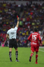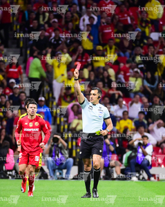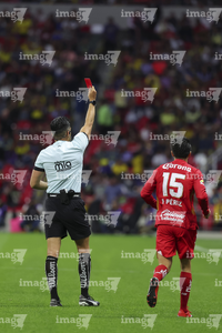 Ciudad de México, 18 de abril de 2026. Ismael Rosario López, árbitro central muestra tarjeta roja de expulsión, durante el partido correspondiente a la jornada 15 del torneo Clausura 2026 de la Liga BBVA MX, entre las Águilas del América y los Diablos Rojos del Toluca, realizado en el estadio Ciudad de los Deportes. Foto: Imago7/ Rafael Vadillo