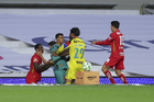 Ciudad de México, 18 de abril de 2026. Paulinho y Rodolfo Cota, durante el partido correspondiente a la jornada 15 del torneo Clausura 2026 de la Liga BBVA MX, entre las Águilas del América y los Diablos Rojos del Toluca, realizado en el estadio Ciudad de los Deportes. Foto: Imago7/ Rafael Vadillo