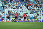 Torreón, Coahuila, 19 de abril de 2026. , durante el partido correspondiente a la jornada 15 del torneo Clausura 2026 de la Liga BBVA MX, entre los Guerreros de Santos Laguna y los Rojinegros del Atlas, realizado en el estadio Corona. Foto: Imago7/ Saul Perales