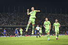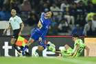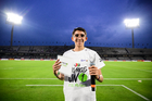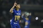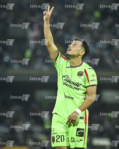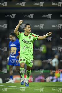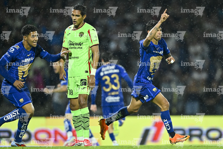 Ciudad de México, 21 de abril de 2026. Francisco Nevárez en festejo de gol, durante el partido correspondiente a la jornada 16 del torneo Clausura 2026 de la Liga BBVA MX, entre los Pumas de la UNAM y los Bravos de FC Juárez, realizado en el estadio Olímpico Universitario. Foto: Imago7/ Etzel Espinosa