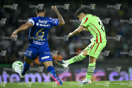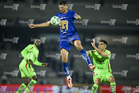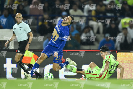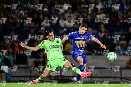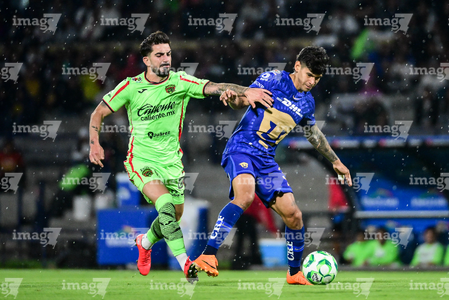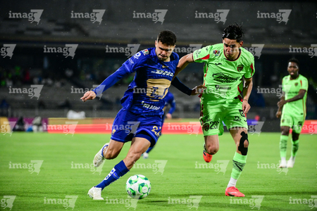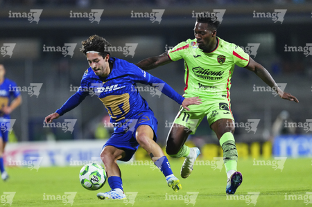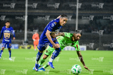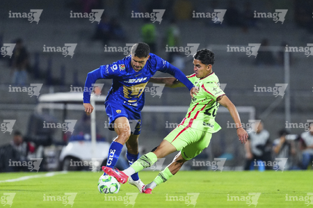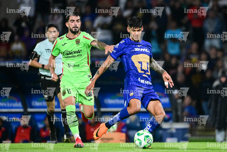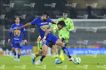 Ciudad de México, 21 de abril de 2026. Rodrigo López y Jose Luis Rodriguez, durante el partido correspondiente a la jornada 16 del torneo Clausura 2026 de la Liga BBVA MX, entre los Pumas de la UNAM y los Bravos de FC Juárez, realizado en el estadio Olímpico Universitario. Foto: Imago7/ Etzel Espinosa