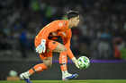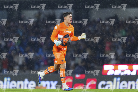 Ciudad de México, 21 de abril de 2026. Pablo Lara ataja balón, durante el partido correspondiente a la jornada 16 del torneo Clausura 2026 de la Liga BBVA MX, entre los Pumas de la UNAM y los Bravos de FC Juárez, realizado en el estadio Olímpico Universitario. Foto: Imago7/ Alexis Chavez