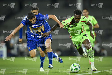 Ciudad de México, 21 de abril de 2026. Oscar Estupiñan, durante el partido correspondiente a la jornada 16 del torneo Clausura 2026 de la Liga BBVA MX, entre los Pumas de la UNAM y los Bravos de FC Juárez, realizado en el estadio Olímpico Universitario. Foto: Imago7/ Alexis Chavez