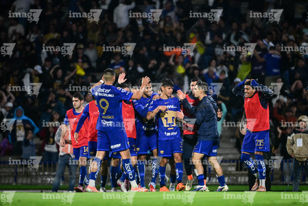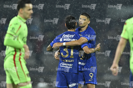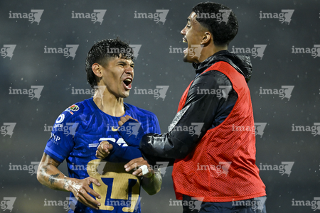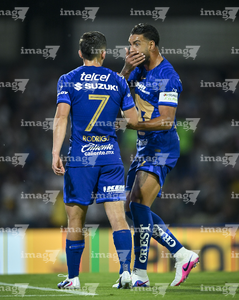 Ciudad de México, 21 de abril de 2026. Robert Morales y Guillermo Martínez en festejo de gol, durante el partido correspondiente a la jornada 16 del torneo Clausura 2026 de la Liga BBVA MX, entre los Pumas de la UNAM y los Bravos de FC Juárez, realizado en el estadio Olímpico Universitario. Foto: Imago7/ Etzel Espinosa