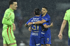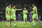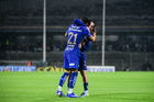 Ciudad de México, 21 de abril de 2026. Sebastián Jurado recibe gol de penal, durante el partido correspondiente a la jornada 16 del torneo Clausura 2026 de la Liga BBVA MX, entre los Pumas de la UNAM y los Bravos de FC Juárez, realizado en el estadio Olímpico Universitario. Foto: Imago7/ Etzel Espinosa