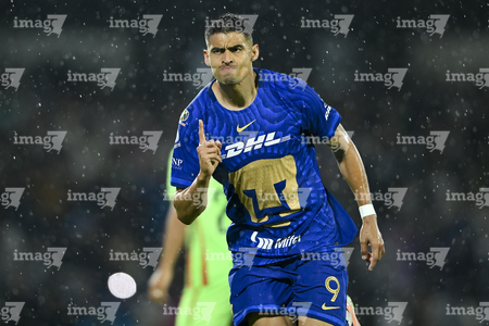 Ciudad de México, 21 de abril de 2026. Guillermo Martínez anota gol, durante el partido correspondiente a la jornada 16 del torneo Clausura 2026 de la Liga BBVA MX, entre los Pumas de la UNAM y los Bravos de FC Juárez, realizado en el estadio Olímpico Universitario. Foto: Imago7/ Alexis Chavez