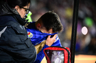 Ciudad de México, 21 de abril de 2026. Alan Medina resultó lesionado, durante el partido correspondiente a la jornada 16 del torneo Clausura 2026 de la Liga BBVA MX, entre los Pumas de la UNAM y los Bravos de FC Juárez, realizado en el estadio Olímpico Universitario. Foto: Imago7/ Manlio Contreras