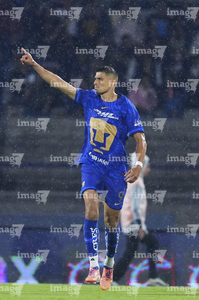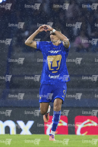 Ciudad de México, 21 de abril de 2026. Guillermo Martínez en festejo de gol, durante el partido correspondiente a la jornada 16 del torneo Clausura 2026 de la Liga BBVA MX, entre los Pumas de la UNAM y los Bravos de FC Juárez, realizado en el estadio Olímpico Universitario. Foto: Imago7/ Manlio Contreras