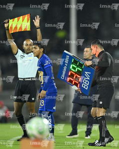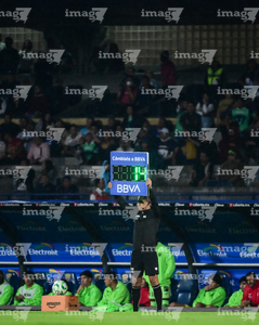 Ciudad de México, 21 de abril de 2026. Iván Antonio López, cuarto árbitro, con el tablero electrónico de cambios, durante el partido correspondiente a la jornada 16 del torneo Clausura 2026 de la Liga BBVA MX, entre los Pumas de la UNAM y los Bravos de FC Juárez, realizado en el estadio Olímpico Universitario. Foto: Imago7/ Alexis Chavez