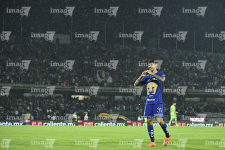 Ciudad de México, 21 de abril de 2026. Sebastián Jurado en festejo, durante el partido correspondiente a la jornada 16 del torneo Clausura 2026 de la Liga BBVA MX, entre los Pumas de la UNAM y los Bravos de FC Juárez, realizado en el estadio Olímpico Universitario. Foto: Imago7/ Alexis Chavez