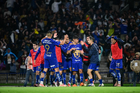 Ciudad de México, 21 de abril de 2026. Jugadores de Pumas en festejo de gol, durante el partido correspondiente a la jornada 16 del torneo Clausura 2026 de la Liga BBVA MX, entre los Pumas de la UNAM y los Bravos de FC Juárez, realizado en el estadio Olímpico Universitario. Foto: Imago7/ Alexis Chavez