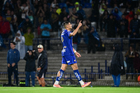 Ciudad de México, 21 de abril de 2026. Pablo Lara en festejo, durante el partido correspondiente a la jornada 16 del torneo Clausura 2026 de la Liga BBVA MX, entre los Pumas de la UNAM y los Bravos de FC Juárez, realizado en el estadio Olímpico Universitario. Foto: Imago7/ Manlio Contreras