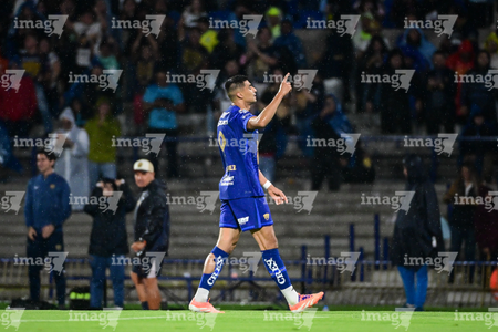 Ciudad de México, 21 de abril de 2026. Guillermo Martínez en festejo de gol, durante el partido correspondiente a la jornada 16 del torneo Clausura 2026 de la Liga BBVA MX, entre los Pumas de la UNAM y los Bravos de FC Juárez, realizado en el estadio Olímpico Universitario. Foto: Imago7/ Alexis Chavez