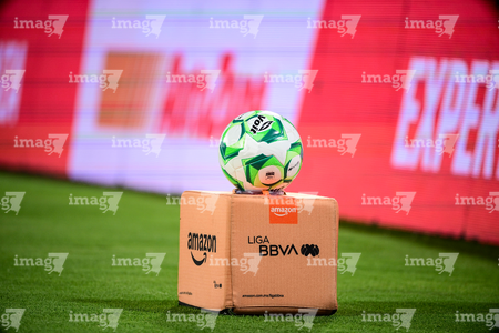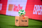 Ciudad de México, 21 de abril de 2026. Balón de futbol Voit Aereus sobre caja de Amazon, durante el partido correspondiente a la jornada 16 del torneo Clausura 2026 de la Liga BBVA MX, entre los Pumas de la UNAM y los Bravos de FC Juárez, realizado en el estadio Olímpico Universitario. Foto: Imago7/ Alexis Chavez
